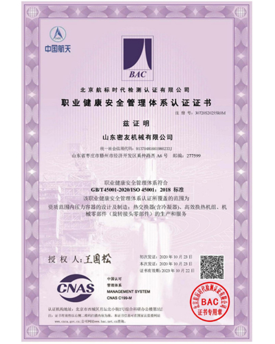 山東密友機械有限公司是國家定點生產A2級(包含D1. D2級)壓力容器的生產廠家,集科研、設計、制造、安裝、銷售、生產于一體的高新技術企業。公司擁有-支經驗豐富的從事換熱節能和機電設備設計的專業隊伍.形成了-支新老結合.校企結合.具備雄厚技術實力的研發隊伍。